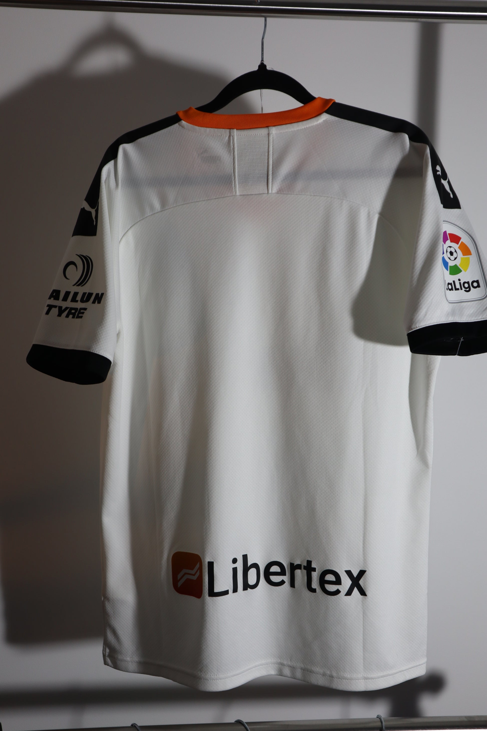 A pristine white Puma away kit with orange V-neckline and black shoulder panels, featuring the bwin main sponsor and Silun Yre secondary sponsor. The clean, elegant design with the iconic Valencia crest represents the Mestalla club during their period competing in La Liga and European competitions before recent financial difficulties.